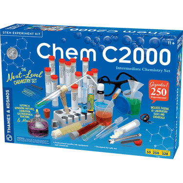 CHEMISTRY C2000 includes everything in CHEMISTRY C1000 and more — with twice the tools and materials, and more than three times the experiments. Most notably, this kit introduces you to the alcohol burner for experiments that require heat, greatly expanding the number of experiments you can conduct.