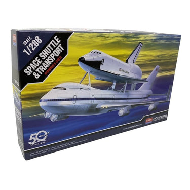 This 1:288 scale model kit from Academy replicates NASA’s modified Boeing 747 carrying the Space Shuttle piggyback style.
