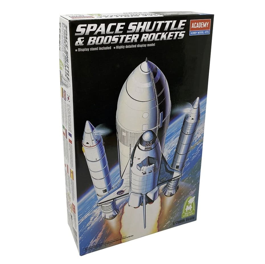 The Academy 1/288 NASA Space Shuttle & Booster model kit offers a detailed and precise build suitable for enthusiasts aged 14 and up.