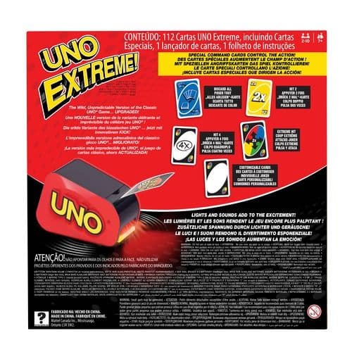This edition of UNO Extreme features an updated card launcher with a sleek design that shoots cards high in the air.