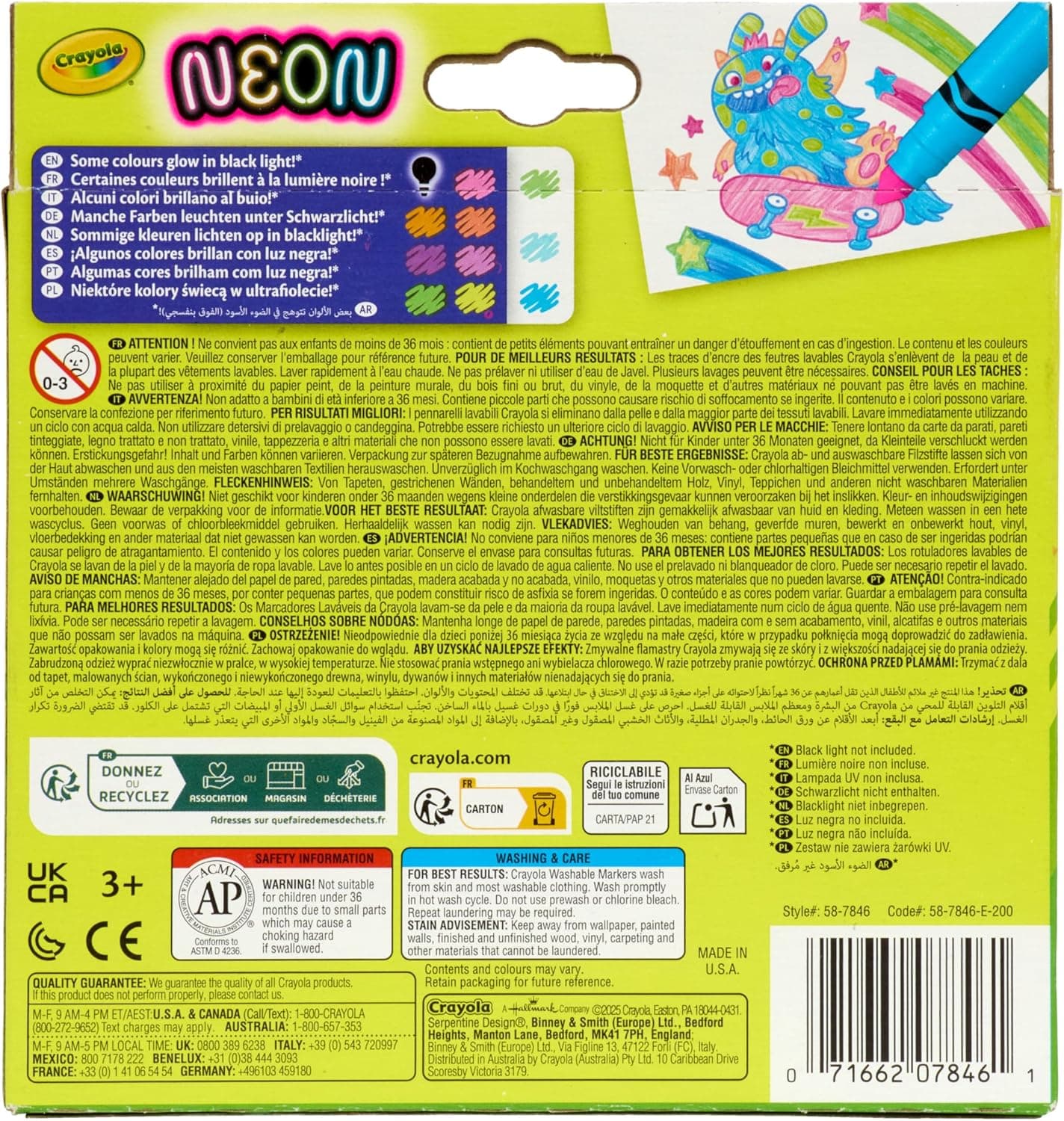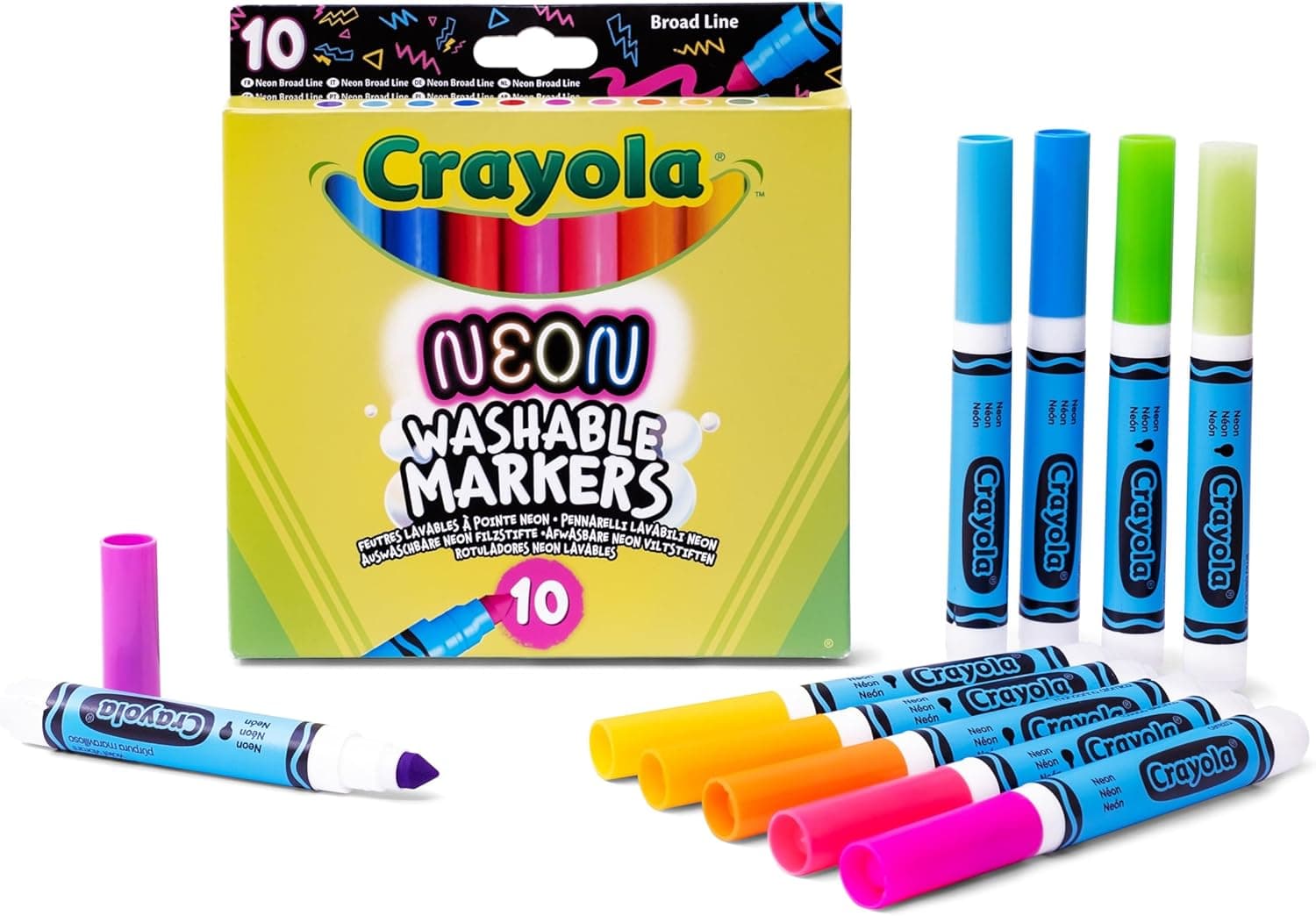 Crayola Pack of 10 Neon Broadline Markers for Children Ages 3 and Up