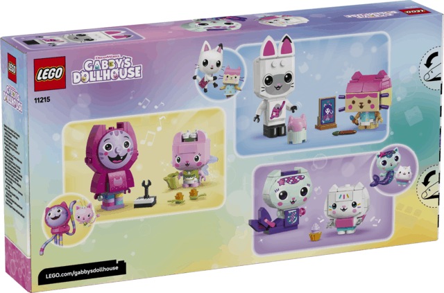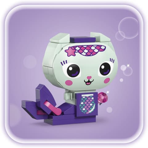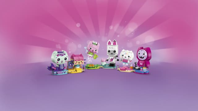 Create, play and display with LEGO Gabby’s Dollhouse Gabby’s Brick-Built Cat Friends: MerCat, ‘DJ’ Catnip, Cakey, Pandy Paws, Kitty Fairy and Baby Box.