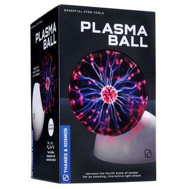 Plasma is the fourth state of matter. Neither solid, liquid, or gas, it is a super-charged ionized gas found in every star. The plasma ball works by sending a high-voltage, alternating current from a Tesla coil at its core, through a noble gas, to the inner surface of the glass sphere. Escaping electrons cause the inert gas inside the sphere to light up, creating the amazing effects. You can actually see electricity in the palm of your hand with this incredible device.