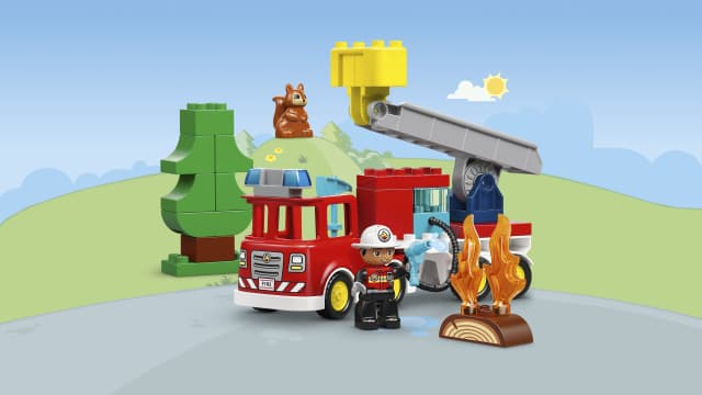 This fire engine toy is packed with features, such as a flexible hose, a tree and a LEGO DUPLO squirrel figure.