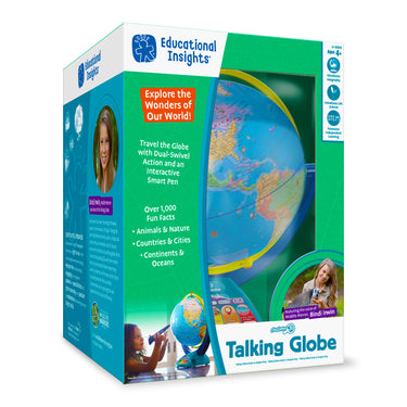 Explore the world with GeoSafari Jr. Talking Globe featuring the voice of Wildlife Warrior, Bindi Irwin as your guide. This children’s interactive globe is great for introducing young children to geography and life sciences through fun, interactive, screen-free activities.