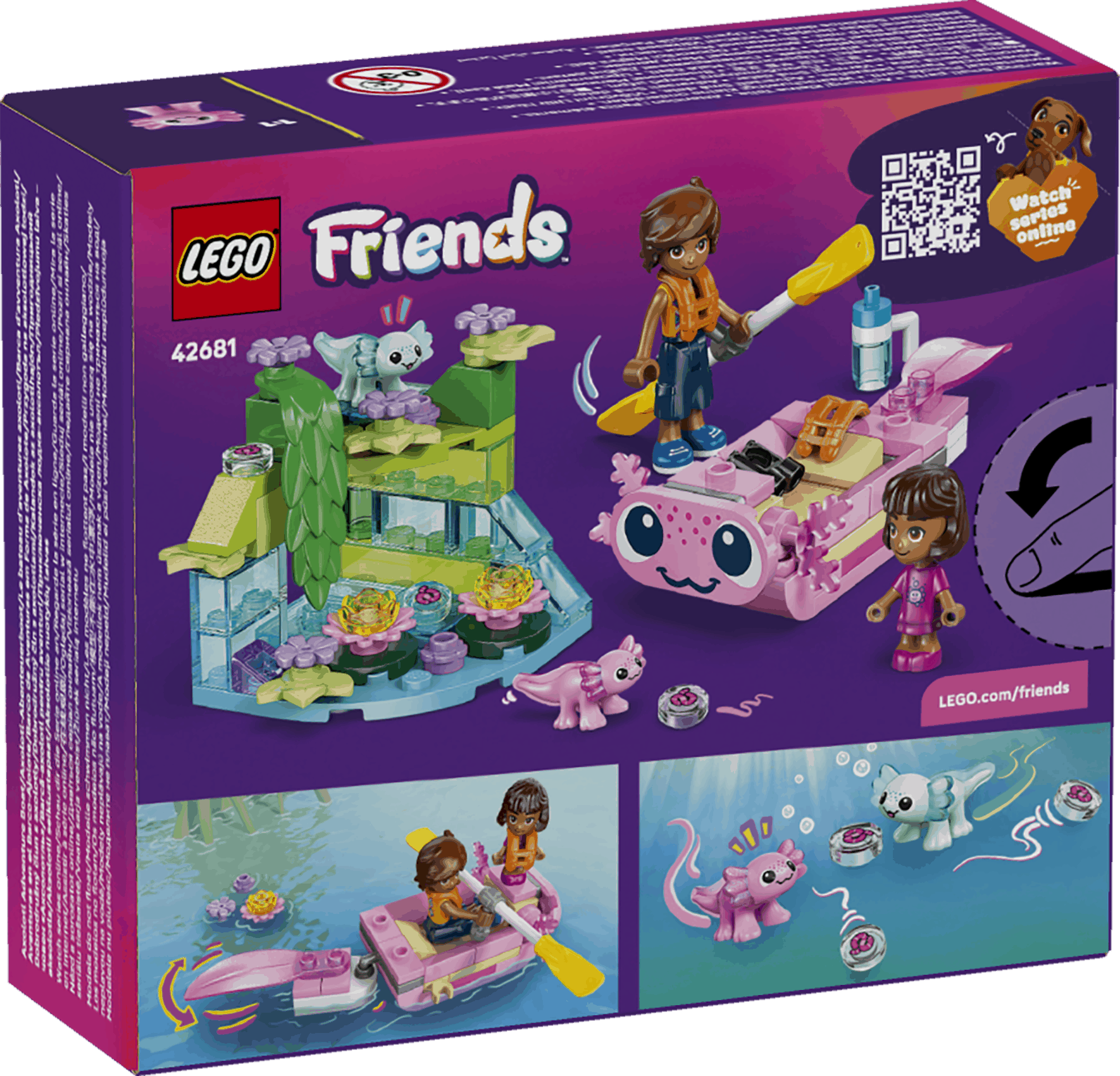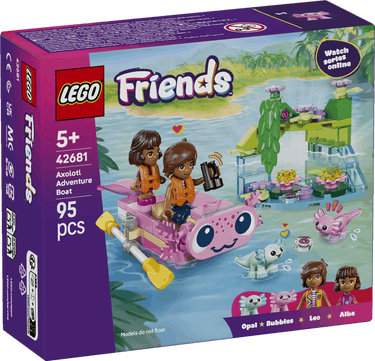 Inspire animal lovers to tell fun stories with the LEGO Friends Axolotl Adventure Boat toy for 5+ year old girls and boys (42681). The animal playset comes with 1 mini doll, 1 micro doll, 2 mini axolotl toys and accessories to encourage creative play.