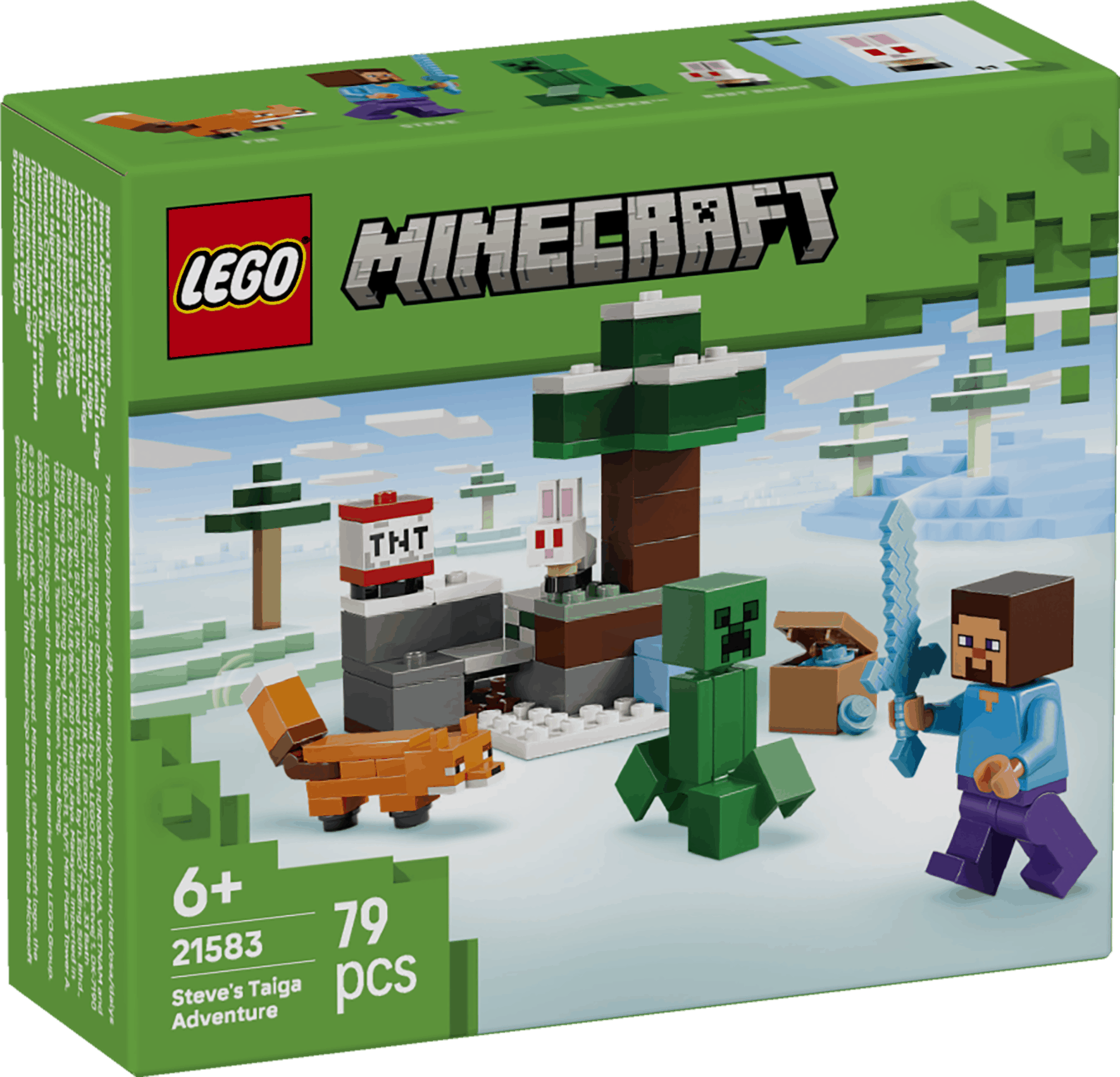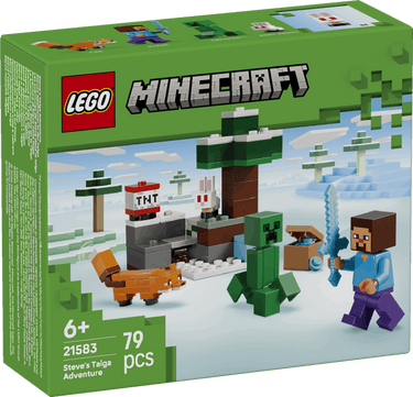 Take players' gaming to the next level with the LEGO Minecraft Steve’s Taiga Adventure (21583) interactive toy for 6+ year old boys and girls. This small LEGO building set is bursting with battle action, treasure hunting and explosive fun for kids to explore with a Steve minifigure, plus Creeper, fox and baby bunny LEGO Minecraft figures.